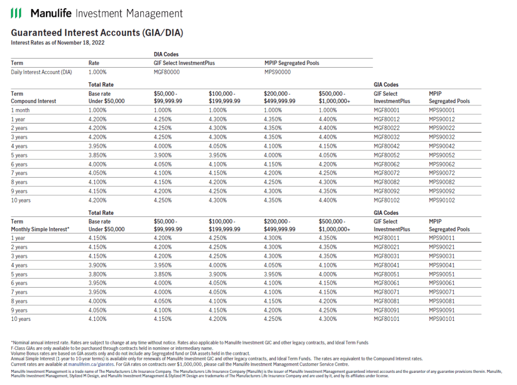 Manulife Guaranteed Interest Accounts – November 18, 2022.