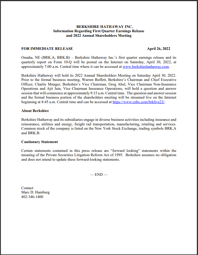 More information, visit the Berkshire https://www.berkshirehathaway.com/news/apr2622.pdf