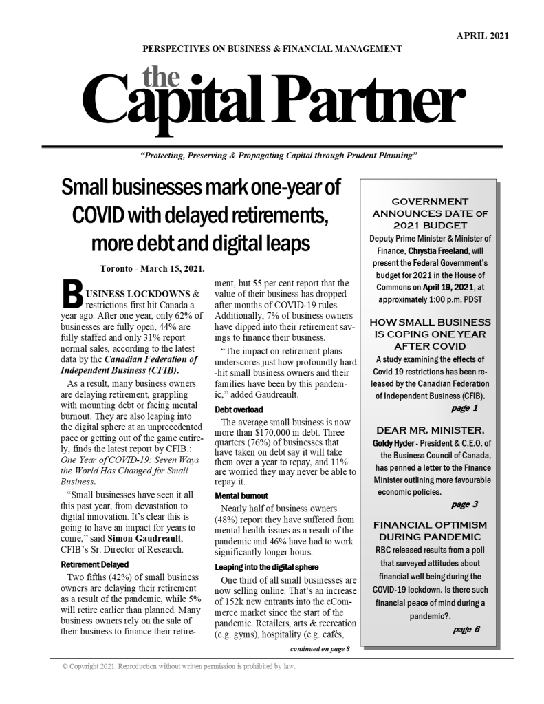 - Small Businesses Mark One Year of COVID – Delayed Retirements, More Debt…