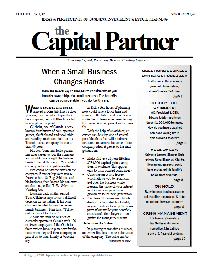 Published by Gordon Wiebe of Stanley Gordon Financial Management