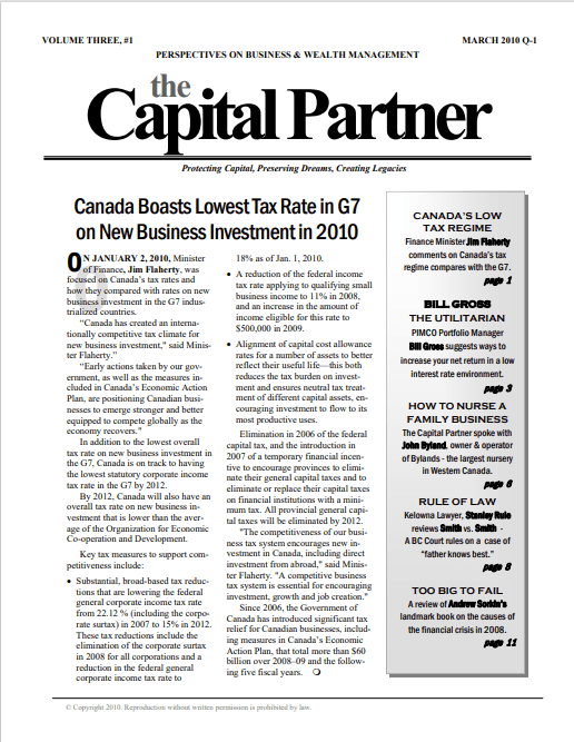 - Canada Boasts Lowest Tax Rate in G7 on New Business Investment
