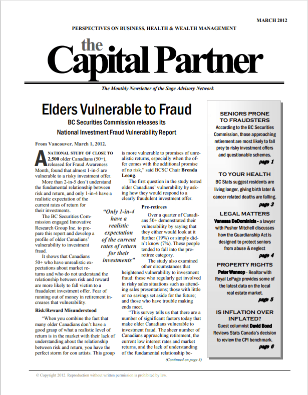 - “Elders Vulnerable to Fraud,” BC Securities Commission